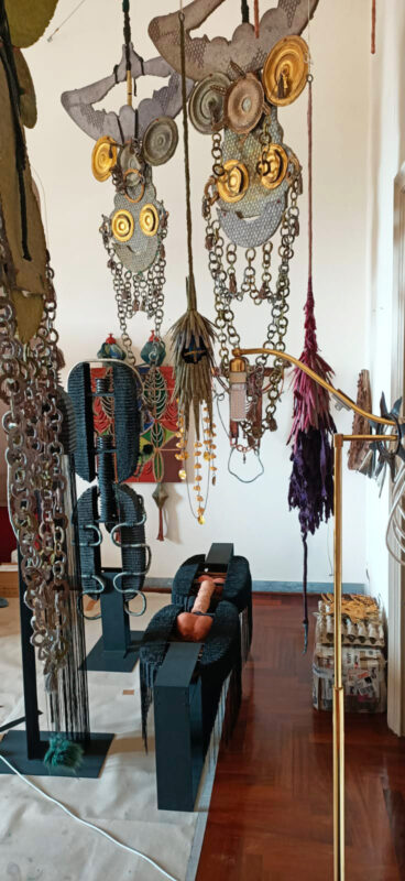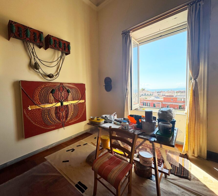 A Napoli il mio processo creativo si nutre di un’energia spontanea, quasi caotica, che mi spinge a sperimentare con ciò che trovo, usando materiali immediati e vissuti. Londra, invece, mi offre un contesto diverso, più strutturato, dove il tempo e lo spazio dello studio mi portano a sviluppare i progetti con maggiore distacco critico. Questo doppio sguardo arricchisce il mio lavoro: il radicamento nella materia e l’apertura a un orizzonte internazionale.