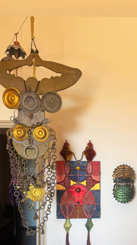Per Not From This Place ho lavorato sull’idea di sradicamento e appartenenza, creando opere che nascono dal confronto con il senso di estraneità, ma anche dalla ricerca di radici comuni. Ho costruito il progetto intrecciando materiali e forme che suggeriscono corpi o corazze ibride, quasi provenienti da un altrove. La mostra da Nashira Gallery è stata un’occasione per aprire un dialogo sul sentirsi parte e al contempo distanti, sull’identità come qualcosa in movimento o continua negoziazione.