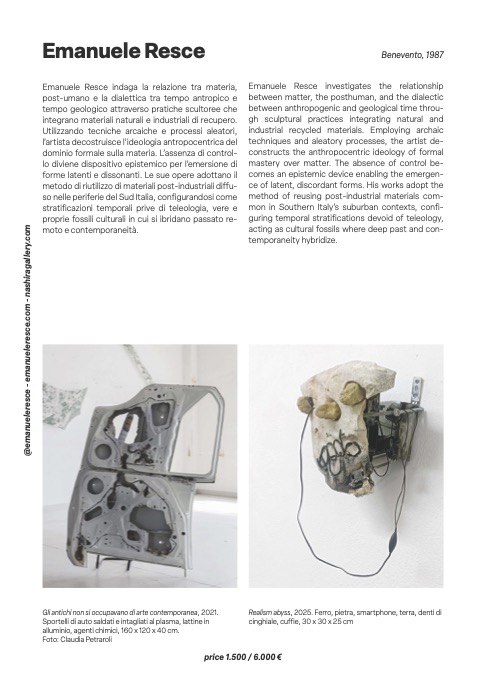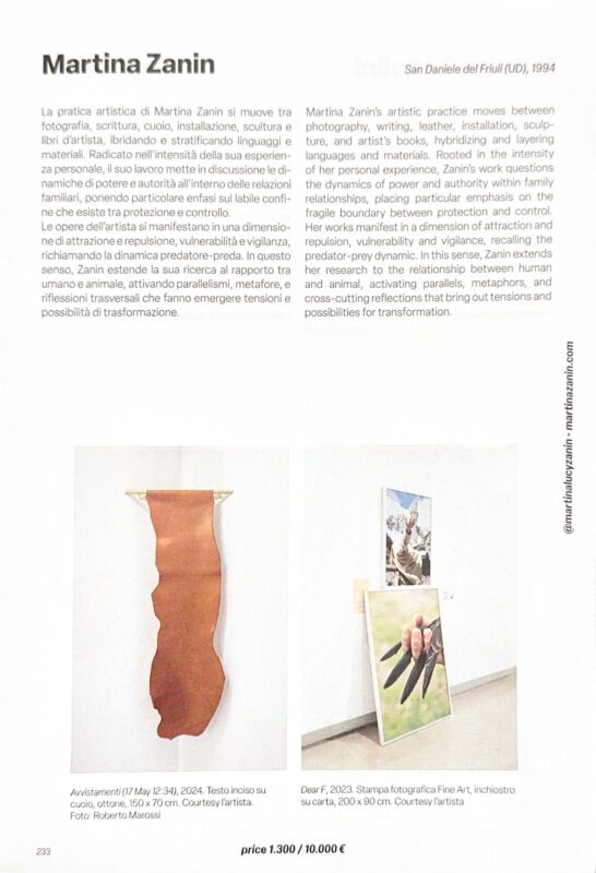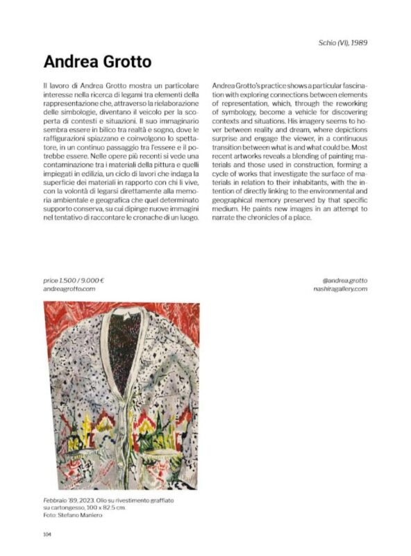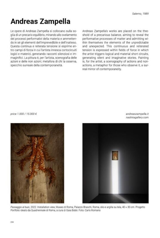 In questo senso, il volume si configura non solo come strumento di consultazione per addetti ai lavori — galleristi, curatori, critici e collezionisti — ma anche come dispositivo critico aperto, capace di stimolare nuove letture e prospettive sulla ricerca artistica emergente. L’inclusione di Grotto e Zampella si inserisce in questo quadro come riconoscimento della solidità e della pertinenza delle loro pratiche all’interno del dibattito contemporaneo.